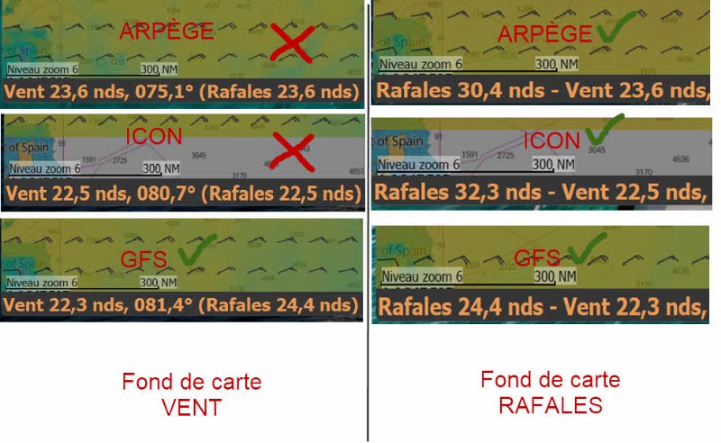 Donc juste pour savoir si quelqu'un observe la même chose: quand le fond de carte est VENT, pour un grib arpege ou ICON, la valeur VENT = valeur RAFALES dans la barre de statut en bas d'écran à gauche, alors que pour un grib GFS tout est ok? (voir-ci-joint, tous les grib proviennent de xygrib)