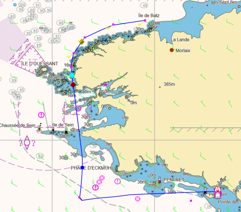 Sinon, J'avais une question: ci-joint une capture d'écran (de synapse je crois?) ou l'on voit ses losanges de changement de voile grossis. Ici, les losanges ne dépassent jamais l'épaisseur de la route et zoomer ne sert à rien donc.Je n'ai pas trouvé d'endroit où régler la grosseur des losanges. Comment faites-vous cela? Merci.