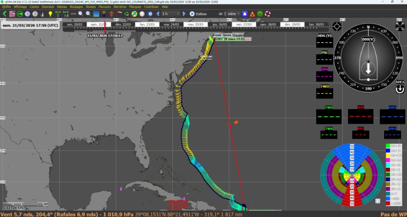 ouais, j'ai vu ça...sauf qu'ici, quand un grib est loadé je ne vois absolument pas les particules blanches, ou plutôt je les devine à peine ...j'ai joué avec le fond de carte pour voir, mbtiles/C-MAP, GSHHS, mème l'opacité du grib et rien n'y fait. Par contre sans grib, les particules colorée sont super ok.